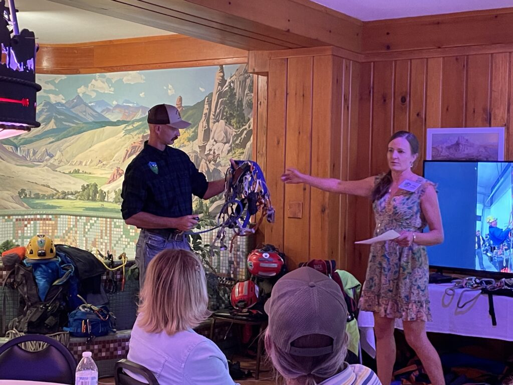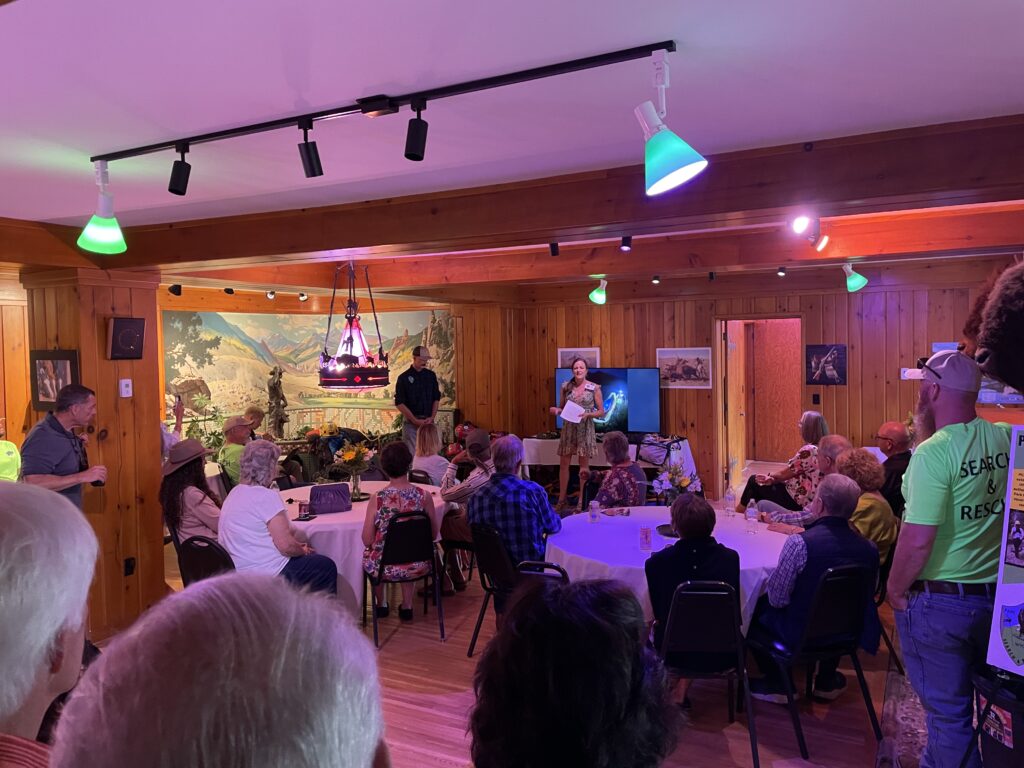 The PCSAR Foundation Soiree event showcased the historic Paul Stock House owned by Chris and Mary Waian and the basement entertaining space served as a perfect venue for a presentation by PCSAR Member and Wyoming Hoist Team Member, Elise Lowe M.D. Dr. Lowe’s presentation highlighted the importance of PCSAR’s presence in Park County, the equipment necessary for hoist team and rope rescue, and the participation of four PCSAR members on the Wyoming Hoist Team. Special thanks to Chris and Mary for hosting the event in their beautiful home. We’d also like to express our gratitude and appreciation to Kalyn Beasley, Libations, PCSAR Member Elise Lowe, M.D., BHCSAR Coordinator Jeff Schmidt, Sitti’s Table, PCSAR Coordinator Bill Brown, PCSAR Volunteer Members, Karina Black, Elks Lodge 1611, and to community members for their attendance. We hope to make the PCSAR Foundation Soirée an annual event!